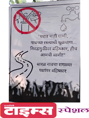 ग्रामस्थांच्या मूलभूत गरजा, पिण्याचे पाणी, वापरायचे पाणी, स्मशानभूमी, घनकचरा व्यवस्थापन,रस्ते,रस्त्याच्या धुळीमुळे आरोग्यावर होणारे परिमाण या समस्यांवर जोवर कायम स्वरुपी तोडगा निघत नाही तोवर पंचायत समिती आणि जिल्हापरिषद निवडणुकीवर बहिष्कार टाकण्याचा पवित्रा सारळ ग्रामस्थांनी घेतला असल्याचे या निषेध फलकातून जाहीर केले आहे. " घरात नाही पाणी ...गावच्या रस्त्याची धूळधाण.. निवडणुकीवर बहिष्कार,हीच आमची वाणी..सारळ गावचा सगळ्या पक्षांवर बहिष्कार...असे फलक सध्या सर्वांचे लक्ष वेधून घेत आहेत. एकीकडे जिल्हाप्रशासन 100 टक्के मतदान व्हावे म्हणून जनजागृती करत आहे, मतदारांना आवाहन करीत असते ,त्यामुळे सारळ ग्रामस्थांनी घेतलेला पवित्रा,आणि त्यांच्या समस्येकडे शासन कसे पाहते,काय तोडगा काढणार ? याकडे ग्रामस्थांचे लक्ष लागले आहे.