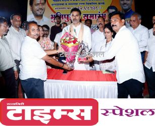 खेड (प्रतिनिधी) : खेड नगरपरिषद हद्दीतील गुलमोहर पार्क खेळाचे मैदान ते कचरा डेपो (वाय जंक्शन) दरम्यानच्या रस्त्याच्या विकासकामाचे भूमिपूजन गृहराज्यमंत्री योगेश कदम यांच्या हस्ते उत्साहात पार पडले. सुमारे ४ कोटी ३२ लाख ६५ हजार रुपये अंदाजपत्रीय रकमेच्या या महत्त्वाकांक्षी प्रकल्पामुळे शहराच्या विकासाला नवी दिशा मिळणार आहे. या कार्यक्रमाला खेडच्या नगराध्यक्ष माधवीताई बुटाला, शहरप्रमुख कुंदन सातपुते, जिल्हाप्रमुख शशिकांत चव्हाण यांच्यासह नगरपरिषद सदस्य, पदाधिकारी, कार्यकर्ते आणि ग्रामस्थ मोठ्या संख्येने उपस्थित होते. भूमिपूजन सोहळ्याला नागरिकांनीही मोठा प्रतिसाद दिला.